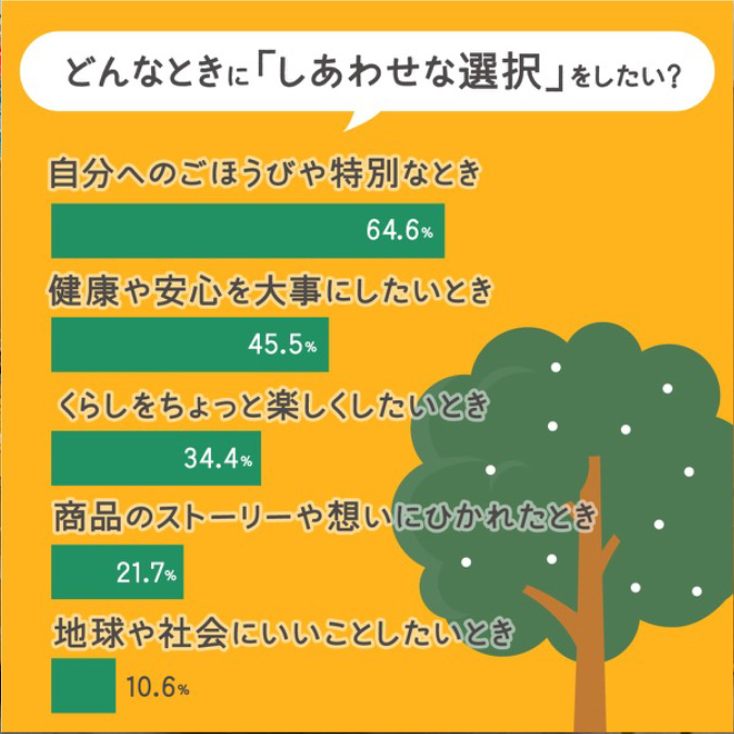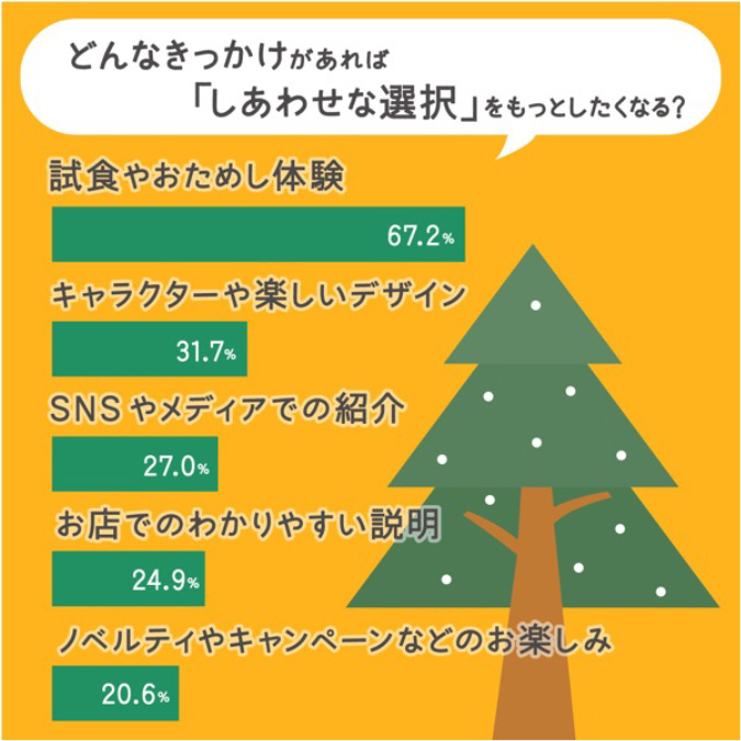 「どんなきっかけがあれば、もっとしあわせな選択をしたくなると思いますか?」という設問では、以下の回答が上位に並びました。